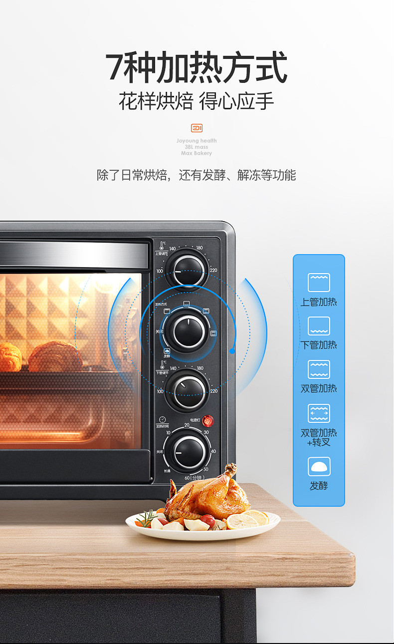 2、多功能烘焙模式:九陽(yáng)烤箱具備多種烘焙模式,滿(mǎn)足您不同的烘焙需求,從烤面包到烤肉,從烘焙蛋糕到烹飪披薩,一應(yīng)俱全,讓您輕松成為廚房高手。